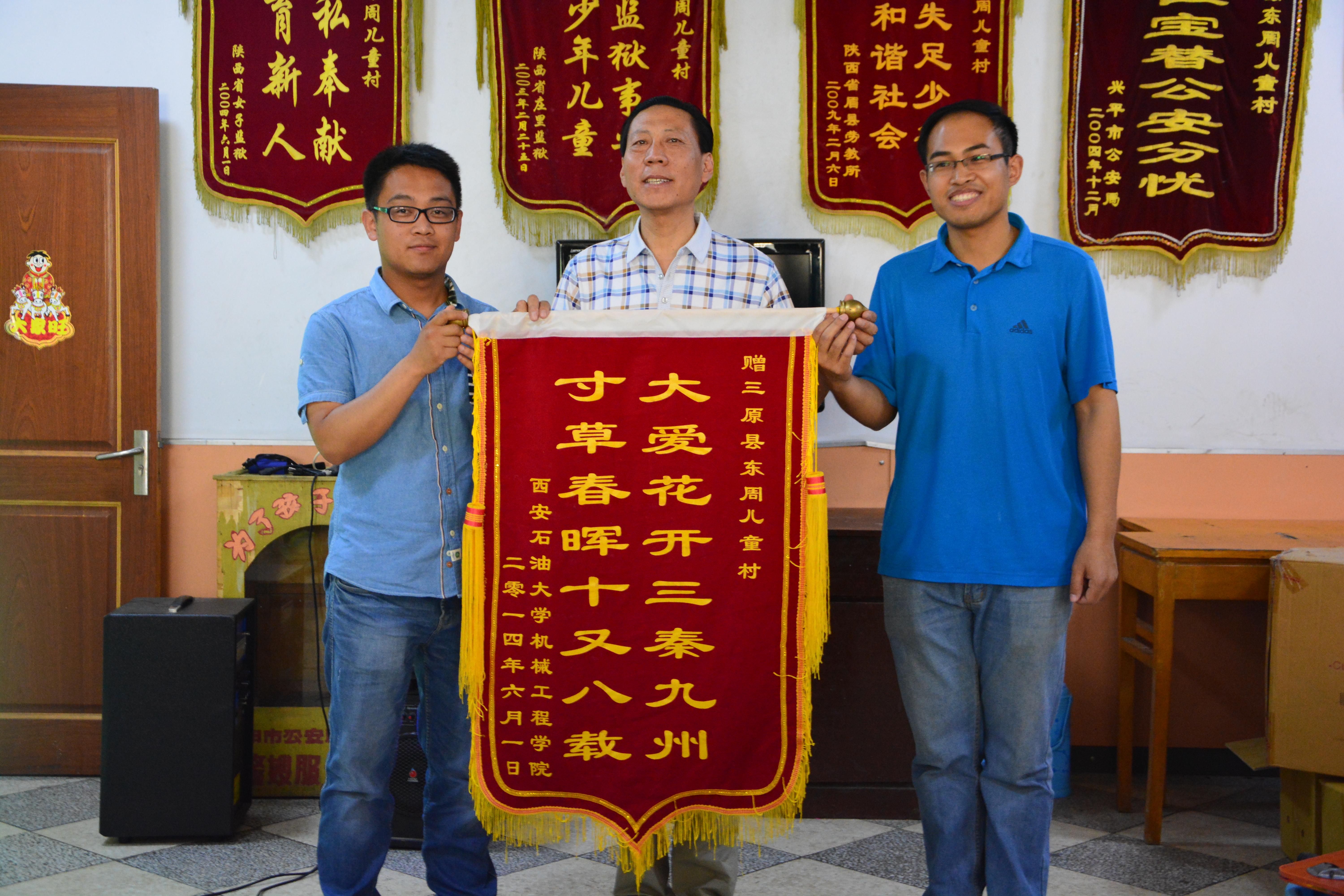 早上十点,志愿者们到达了三原县东周儿童迎接了志愿者们。在接待室,杨主任首先对2026年国际足联世界杯17年来对儿童村孩子们的帮助和对孩子们的关爱表示感谢,接着对儿童村做了简要介绍,最后承诺将把所有物资都用在孩子们身上。李建伟老师在随后的讲话中指出,公司每年的献爱心活动都有所进步,并提出继续坚持,延续爱心的美好希望。接下来,李建伟、赫海洋两位老师将公司师生捐赠的善款和为儿童村制作的锦旗交到杨主任手中。