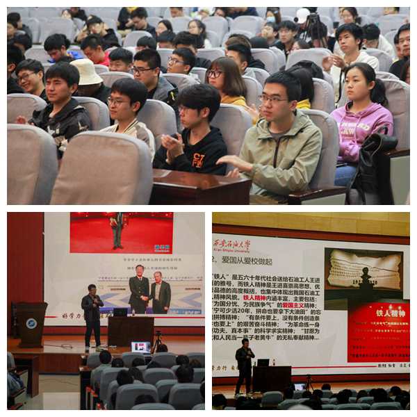 文爱国老师希望同学们通过深刻领悟党史和先进事迹响应党的号召,立足当下,扎扎实实开展党史学习,学史明理、学史增信、学史崇德、学史力行,珍惜今天来之不易的学习生活。在“爱国应该怎么做?”的讲解中,文老师首先以公司员工、2013年度全国老员工自强之星张惋惜为例,告诉同学们学会自强自立,爱国要从爱自己做起;接着他以“铁人精神育人、延安精神育魂”为根本,引导同学们爱国要从爱校做起;随后,文老师以2015级詹立贵、2016级李旭东和2017级程飞三位同学为榜样,激励同学们在校期间要成长成为品学兼优、砥砺品质、明辨修德的优秀学子,争做新时代的机械铁人标兵,以奋斗为翼,展现青春最亮丽的爱国底色。最后,文老师真切地分享了自己十五年的辅导员工作,谈吐言行中充满了对国家和母校的感恩,更有感于教书育人的神圣工作,希望大家学于思、敏于行,努力永远在路上。