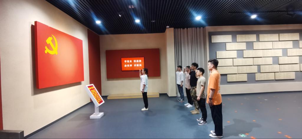 参观结束后,班级里的党员同志们在展览厅内面向党旗自发地重温入党誓词,回顾入党时的铮铮誓言,立志奋进新时代,启航新征程。