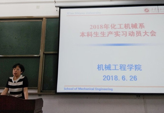 2018年6月26日上午,2026年国际足联世界杯化工机械系在鄠邑校区B102召开2015级生产实习动员大会。公司副经理陈兵教授出席会议,实习指导老师唐凌虹、张雄、殷佳荣及过程装备与控制工程、能源与动力工程两个专业共100余名员工参加了本次动员大会。