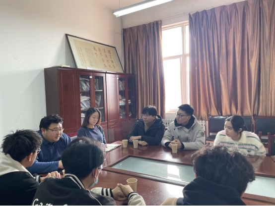 图3学办主任王璟和本科员工沟通交流