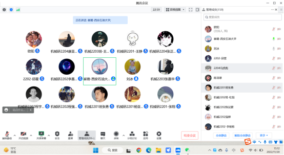 在全体研一员工线上座谈会上,公司副经理崔璐教授在听取同学们各类意见建议之后,重点强调了科研激励、成长规划、规矩意识三个方面。崔教授鼓励同学们进行学术型研究,积极参加各项学科竞赛,遇到问题及时与老师沟通,提高自身的科研能力。在成长规划方面,要求同学合理规划学习和生活,明确自身目标与方向,坚定信念,过一个充实的校园生活;崔教授强调,当下西安疫情严重,对于一些同学的焦虑与烦躁情绪表示理解,同时也希望各位同学务必配合相关防疫政策与要求,积极响应公司各方面的工作,培养自身规矩意识,存在问题及时反映,为疫情的好转贡献力量。