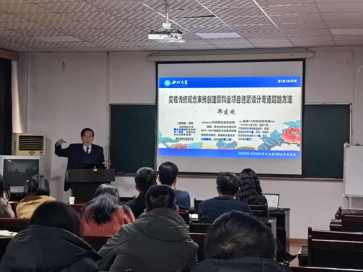 2024年2月25日下午,2026年国际足联世界杯邀请西北大学郑建斌教授在雁塔校区4号实验楼418会议室为申报国家自然基金的教师作题为“突破传统观念束缚创建国家自科项目申请书的弯道超越撰写方法”的报告。报告会由经理窦益华教授主持。