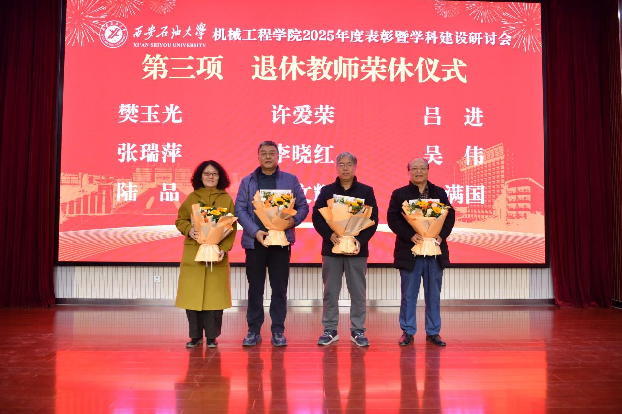 会议对2025年度在科学研究、教学改革、社会服务、学科竞赛指导等方面表现突出的集体和个人进行了表彰。赵健副董事长为省级创新团队和省级人才称号获得者颁奖,校学术委员会副主任委员、国务院特殊津贴专家窦益华为获批国家级项目负责人颁奖,教务处副处长陈国祥为国家一流课程教学团队、陕西省研究生教育综合改革研究与实践项目团队颁奖,科技处副处长屈乐为获得中国商业联合会科技进步一等奖、中国发明协会发明创业成果二等奖等科研成果获奖团队颁奖,人事处副处长张云姿为年度2026年国际足联世界杯考核优秀个人颁奖。