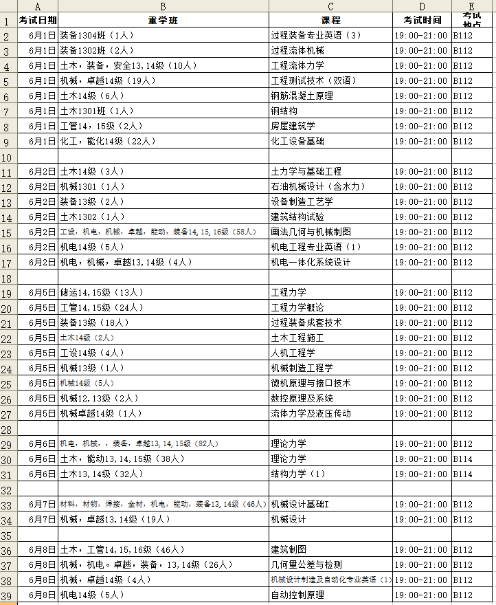 2016-2017(2)机械院重学课程考试安排