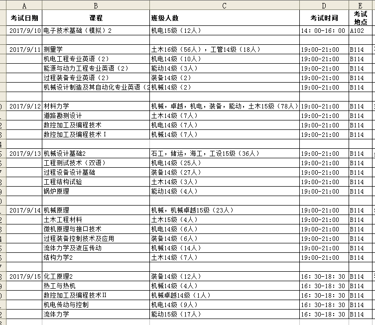 2016-2017学年第二学期补考安排