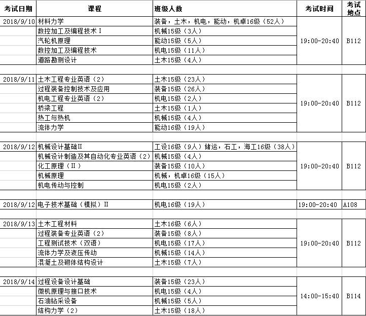 2017-2018(2)机械院专业课补考安排