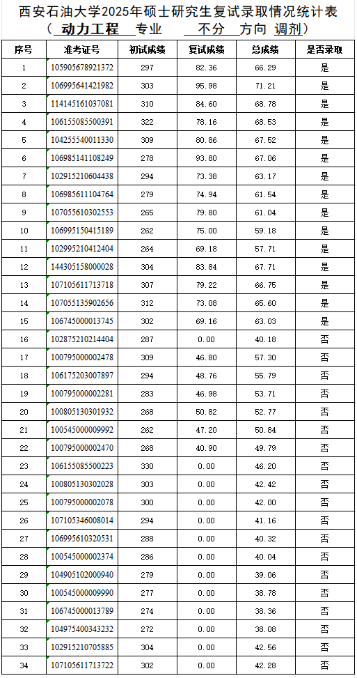 现将公司2025年硕士研究生招生一次调剂复试成绩(085802)予以公示。
