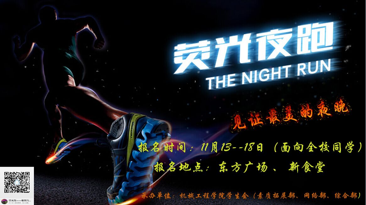 跑步本是日常生活中最常见的一种锻炼方式,但不同的规则给它赋予不同的涵义。为积极响应全民健身的号召,公司团委员工会组织进行了本次富有特色而充满艺术性的“荧光夜跑”活动。在本次活动中,参与者将利用荧光设备随性装饰,让自己成为夜幕下跑道上的一个闪光点。本次活动中无排名之分,无速度之争,同学们可依据自身体质,通过运动释放压力。自活动开始起主办部门将会设立签到制度,活动要求无天气影响情况下需至少连续15天参加,本学期末将会对每位同学的参与次数进行统计并给予相应奖励。