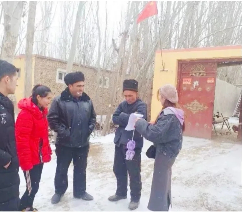 阿米乃木说,平时她们和结亲干部都跟一家人一样,结亲干部帮助了他们很多,所以家人都很支持自己在疫情防控工作中帮助干部做翻译工作。在提到防疫工作中遇到的困难时,阿米乃木告诉我们:遇到最大的困难便是部分村民家住的比较偏僻且没办法开车过去,只能步行,有时候还得走田间小路,回家都很晚,虽然路途上有些累吧,但这些累相比奋斗在防控一线的医护人员并不算什么,遇到困难就先把心态要放好,而且村民们都很热情,很配合她们工作。
