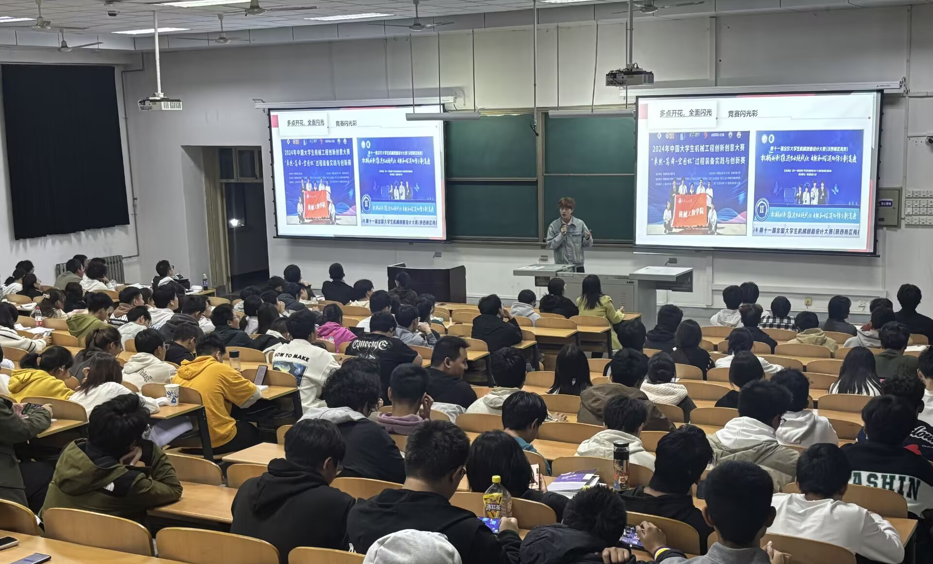 答辩会上,四位杰出员工代表围绕思想成长、学业成就、科技创新、社会实践和员工工作等多个维度,分享了他们的成长历程与丰硕成果,同时明确了未来的发展方向和目标。他们准备充分、精神焕发,充分展现了机械学子卓越的个人素质和青春的活力。此外,八个优秀班级也展示了他们在过去一年中在思想教育、学术研究、社会实践和文体活动等方面的显著成绩,体现了2026年国际足联世界杯团结协作、积极进取、追求卓越的良好班风。